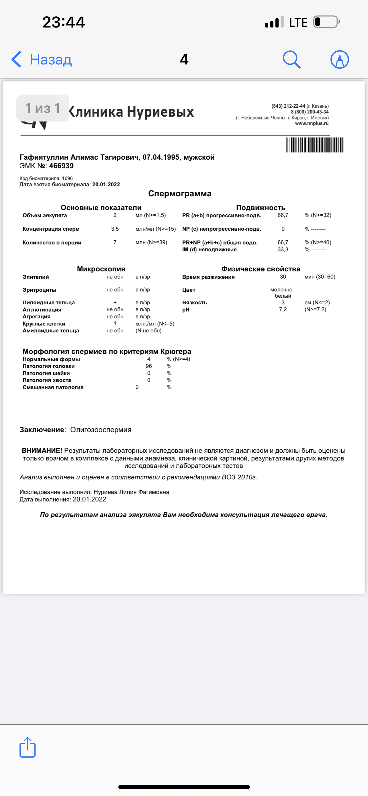 Добрый день! Вероятность зачатия может быть несколько снижена, но не исключена. Остальные показатели нормальные. Попробуйте поступить следующим образом: 1. Исключить вредные факторы - курение, алкоголь, перегревание, переохлаждение, и особенно стресс. 2. Увеличить физическую нагрузку - в разумных пределах. 3. Принимать непрерывно 3 месяца препарат Мираксант по 1 капсуле 2 раза в день. Почему 3 месяца - это время полного "обновления" выработки эякулята, то есть его полное обновление. Через 3 месяца - сдать анализ эякулята и посмотреть на результаты. В Мираксанте содержатся антиоксиданты, которые положительно влияют на сперматогенез (образование и созревание сперматозоидов). Заказать его можно на Озоне https://www.ozon.ru/category/bady-dlya-muzhchin-6188/?category_was_predicted=true&from_global=true&text=мираксант. Удачи.