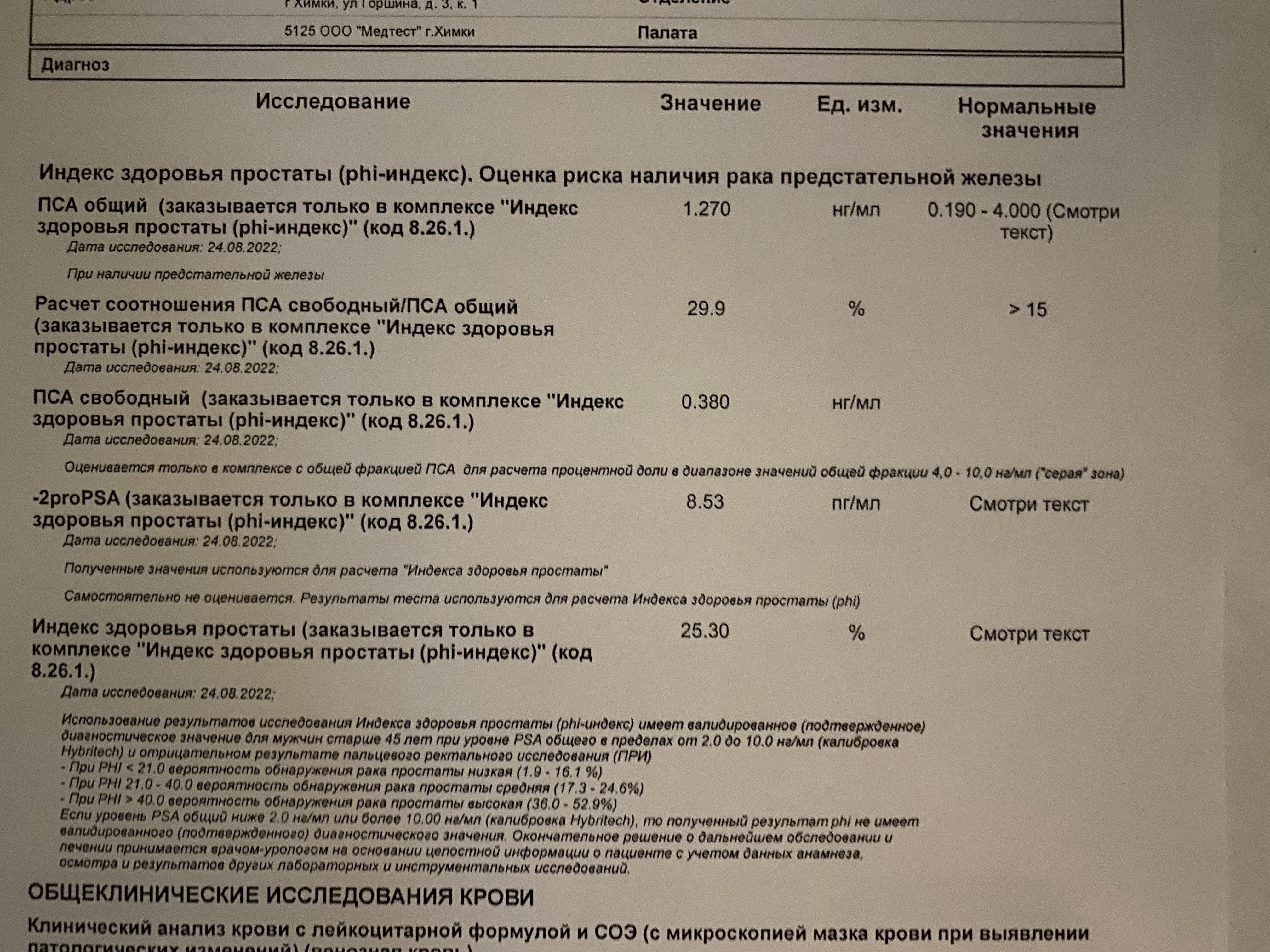Расшифруйте ,пожалуйста анализ индекс здоровья предстательной железы. Все ли нормально?