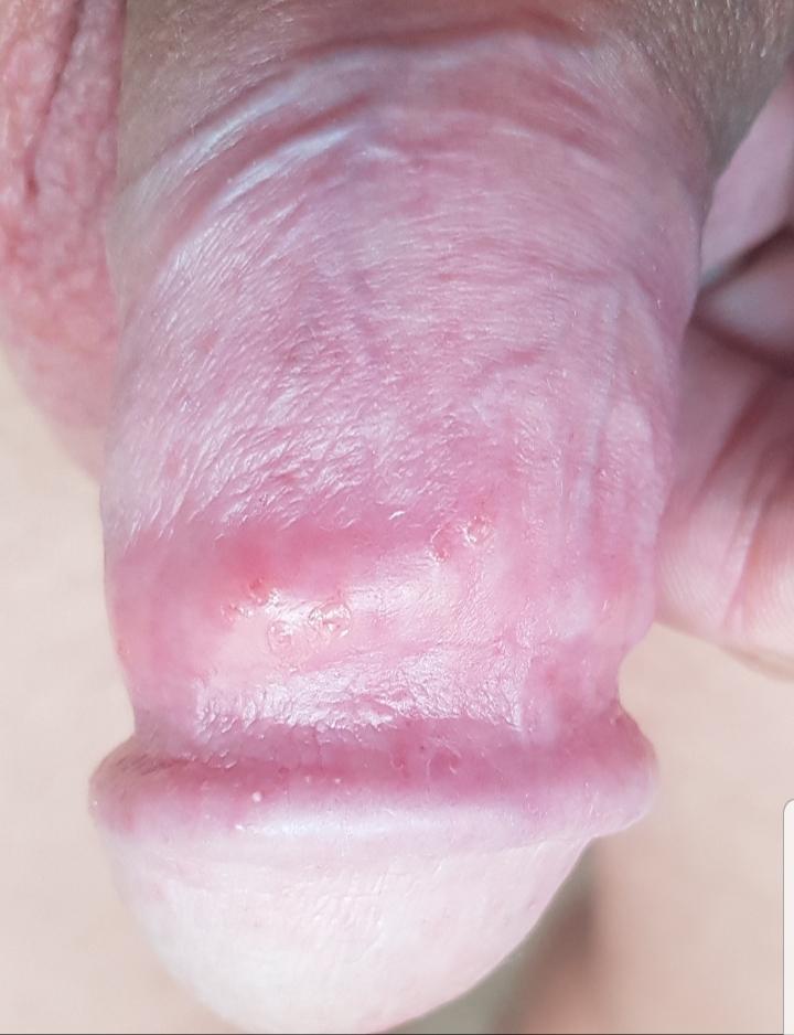 Добрый день! Вам с партнершей надо обследоваться на инфекции, передающиеся половым путем (ИППП), узнайте - нет ли у нее баквагиноза. Если это будет обнаружено, то лечение надо будет проводить обоим. Пока местно можете смазывать 2 раза в день кремом Баланекс - тонким слоем, 3-5 дней. Удачи.