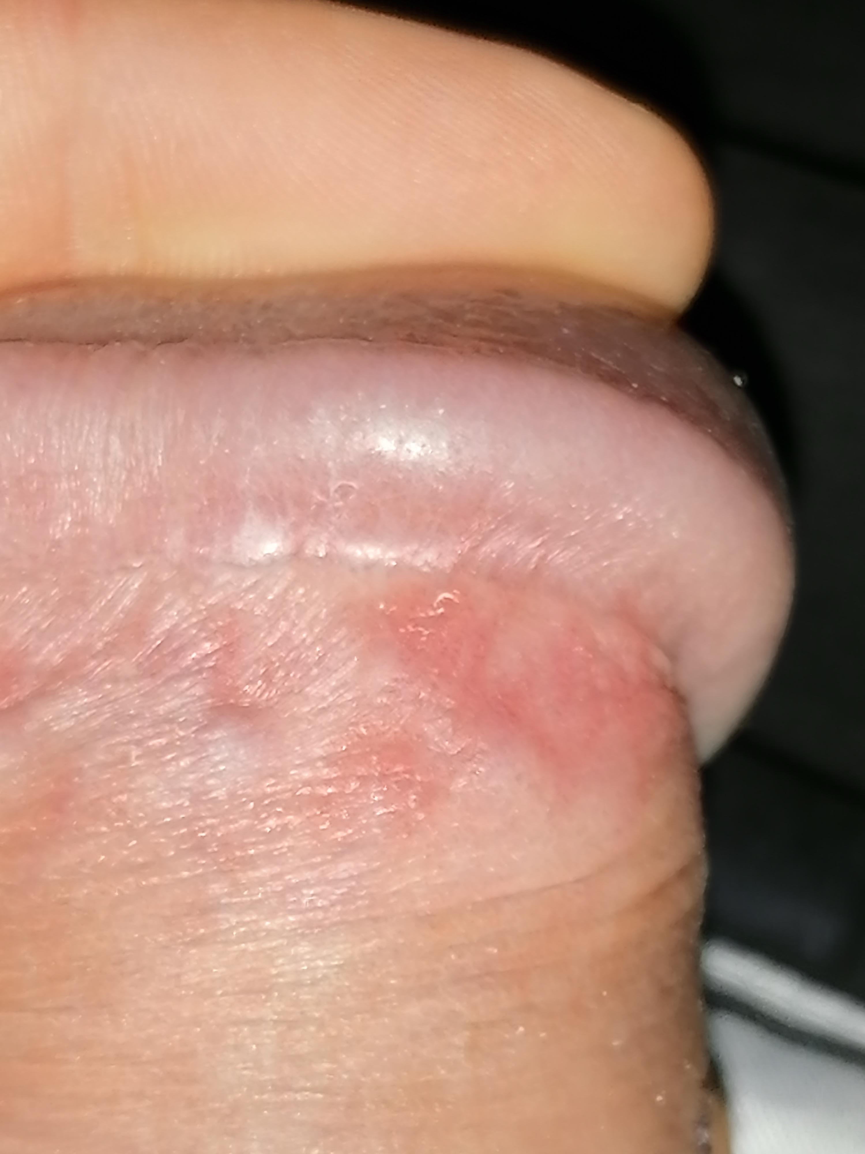 И вот сейчас неделю назад с той же девушкой занимались петтингом, потом я делал фингеринг, а она мне мастурбировала, предварительно обработав руки кутасептом и хлоргексидином, в последствии я обработался тут же мирамистином, хлоргексидином, помочился, и снова обработался, и делал это еще несколько раз в течении пары часов. Через 3-4 дня после этого обнаружил у себя эти пятна.