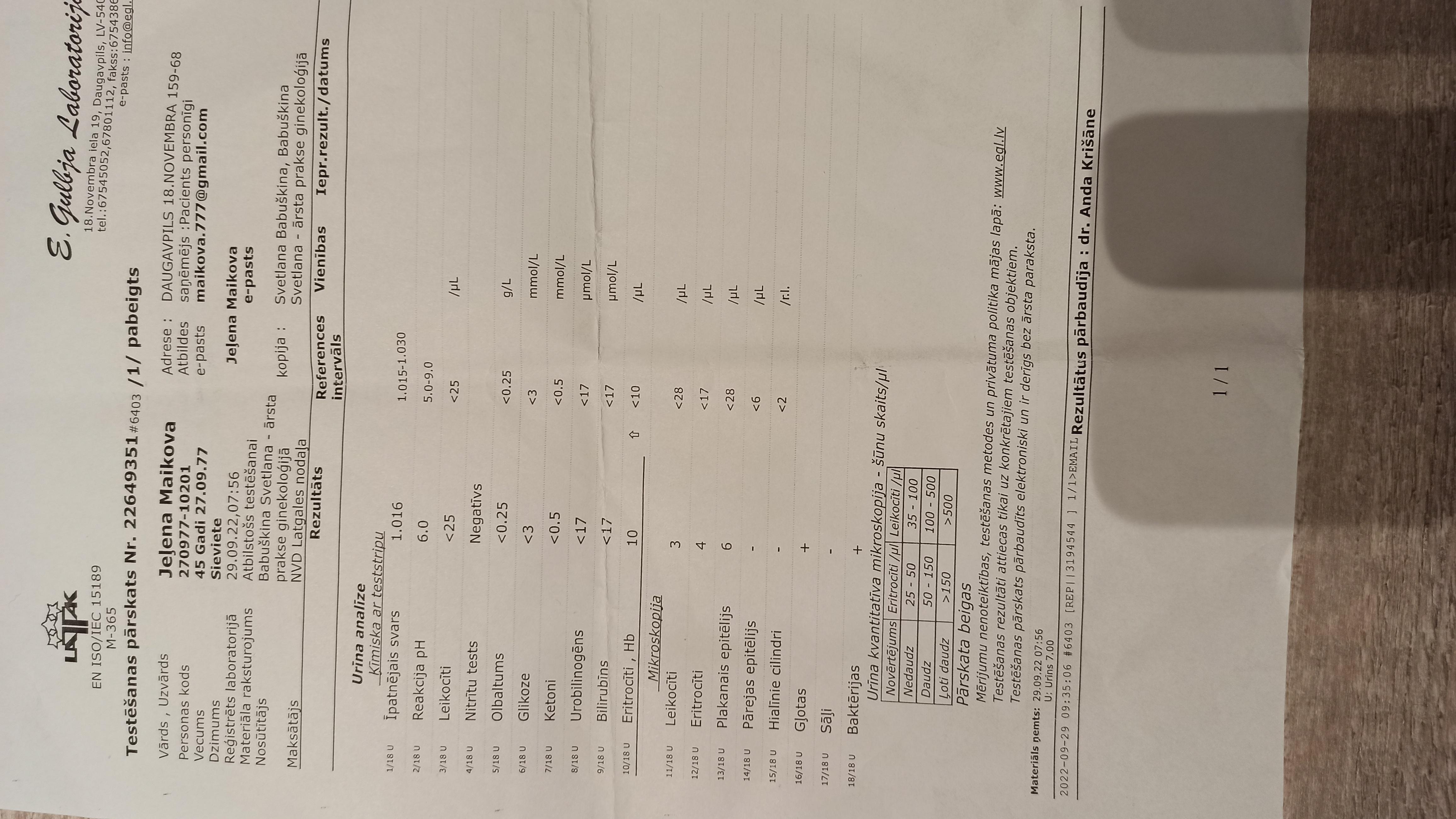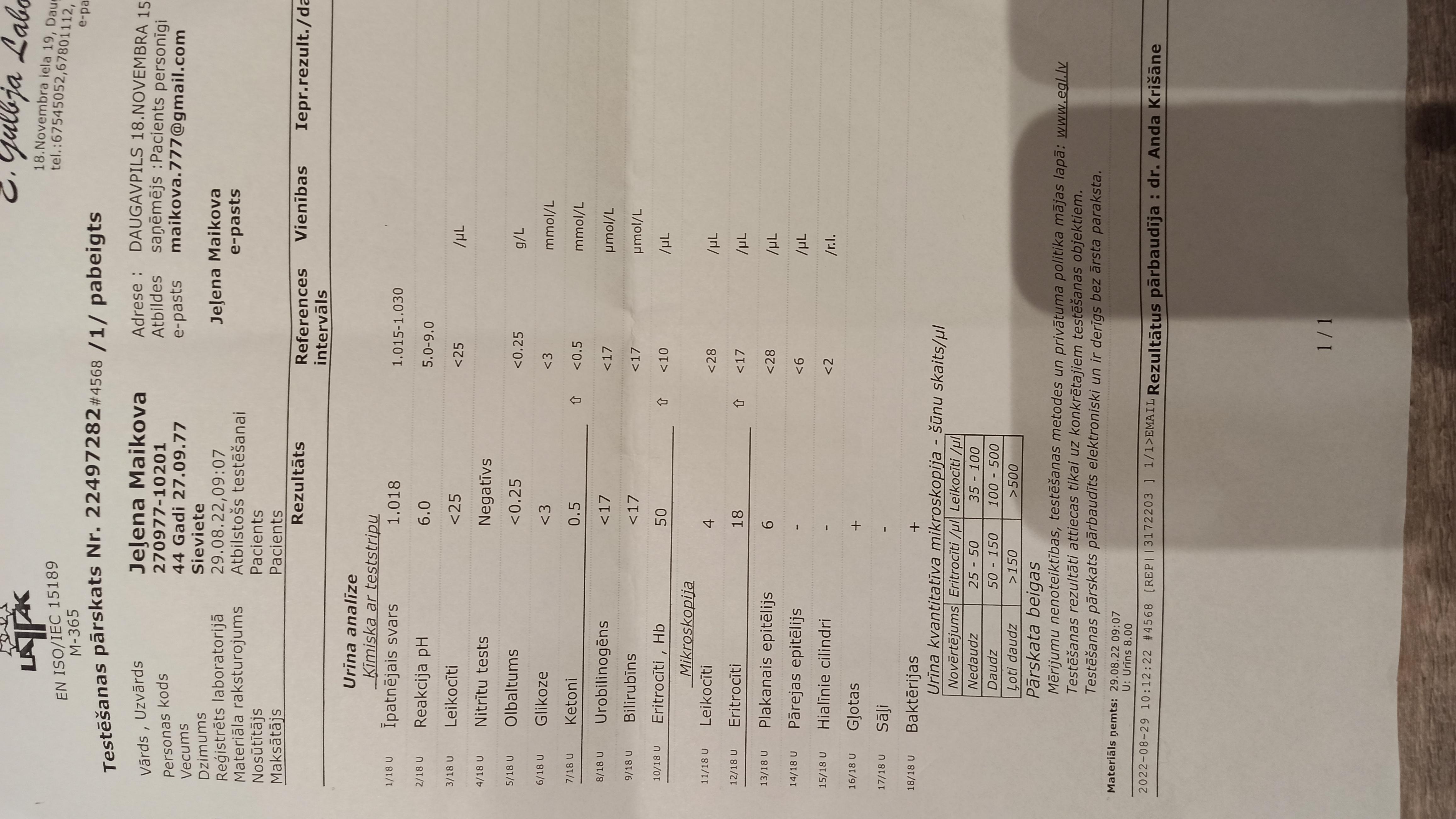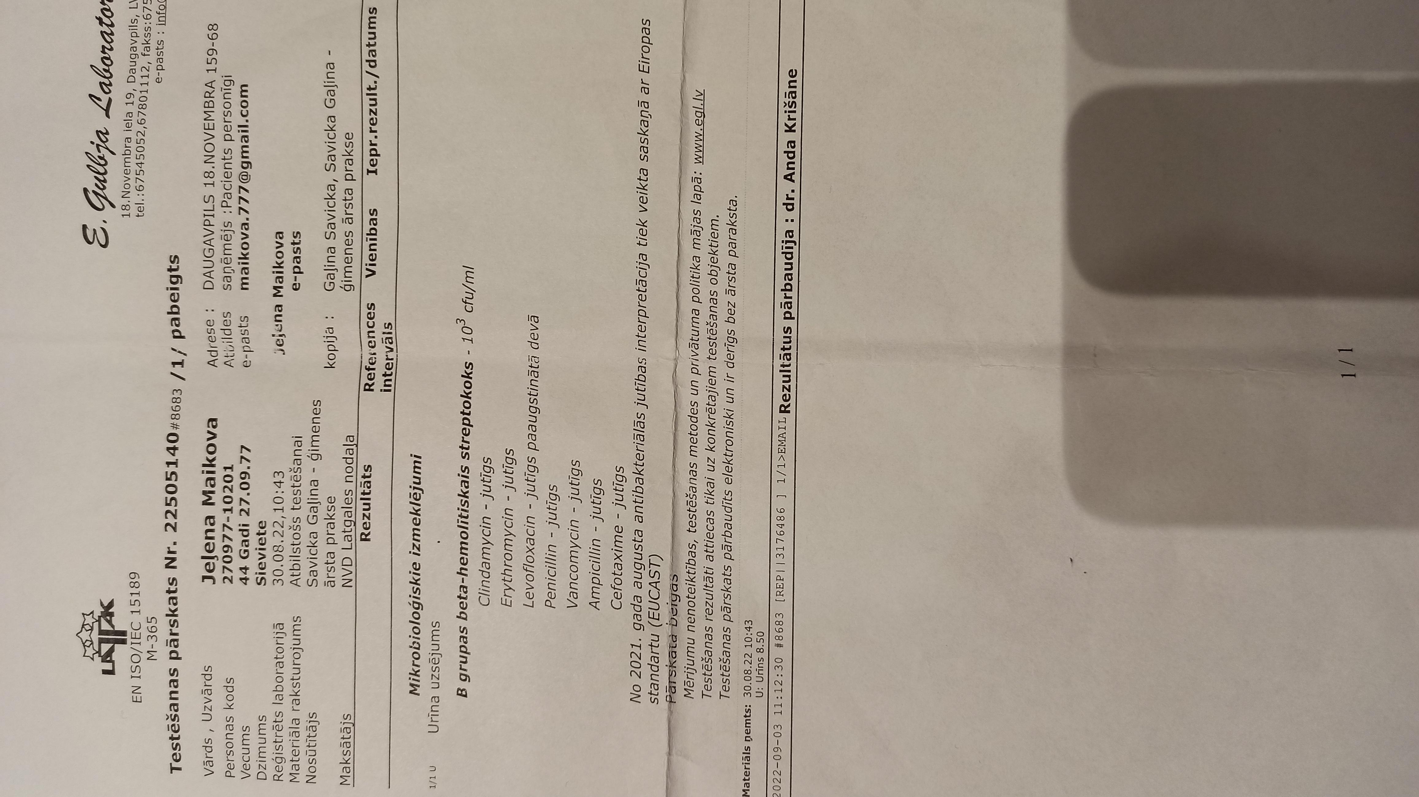 Здравствуйте. Посоветуйте пожалуйста тактику лечения. Циститы посткоитальны (е коли) возникали и ранее, всегда спасал фурамаг. Потом перестал помогать, пила антибиотики по посеву. 5 лет назад после рецидива долго беспокоили остаточные явления, либо это было вяло текущее воспаление, не знаю. Но острая стадия снималась антибиотиками. Потом все наладилось. 2 года все было хорошо, и вот опять обострение после ПА. Воспаление началось 22 августа, развивалось постепенно, я даже не сразу поняла что это цистит, первично пошла к гинекологу из-за боли внизу живота. По гинекологии все ок. В моче бактерии, высеился стрептококк 10в 3. Чувствительность была к Cefotaxime. Врач выписал мне цефуроксим, та же группа только 2 поколение. Не знаю верно или нет, потому что другой врач сказал что это немного другой все таки препарат. Я пила как назначили, 7 дней. Через 2 дня после окончания курса была на консультации у уролога. Поскольку остались жалобы, было сказано пить еще 3 дня, итого 10 дней. Несколько дней чувствовала себя хорошо, но низ живота иногда потягивало. Потом стало хуже, опять боли, раздражение в мочевом, желание мочиться, отсутствие облегчения после мочеиспускания. Все началось заново. Я старалась вытерпеть 2 недели после антибиотиков чтобы сдать посев. В итоге сдала на 13 день, было совсем плохо. Через два дня из-за плохого самочувствия врач назначила мне другой антибиотик, который был чувствит. по первому анализу -клиндамицин 12 дней. Я начала принимать, сразу было облегчение. А через пару дней пришел результат посева, чисто, ничего не выросло. На четвертый день приема антибиотиков живот стал болеть еще больше, ходила и стонала, было ощущение что в мочевом пузыре хлорка, не могла сидеть. Пила обезбаливающие. В итоге пропила клиндамицин все 12 дней, на 9-10 день все как-будто прошло, но в последние дни антибиотиков все равно чувствовался дискомфорт. Я надеялась что это остаточные явления, которые сойдут на нет, продолжала растительные препараты. К слову сказать много чего пила, изначально травяной сбор, канефрон, фитолизин, пробиотики Потом заказала маннозу, клюкву, монолаурин. Пью много воды, поддерживаю кишечник как могу, (пищеварительная система и так слабая - ГЭРБ), но второй курс антибиотиков получается был напрасным. Как убить бактерию? И какая там теперь бактерия? Мучиться и пытаться продолжать сдавать посевы, что делать? Или это стрептококк такой живучий. Лейкоциты кстати не увеличены, и 2 года назад тоже так было, только эритроциты увеличиваются. Это означает что организм не борется с бактерией?? Я очень устала, помогите, не знаю что делать. Третий курс антибиотиков боюсь не осилю. Прикладываю фото результатов анализов, jutīgs на латышском - чувствителен, остальное думаю разберетесь. Ответьте мне пожалуйста, у нас в городе нет таких продвинутых врачей как вы.