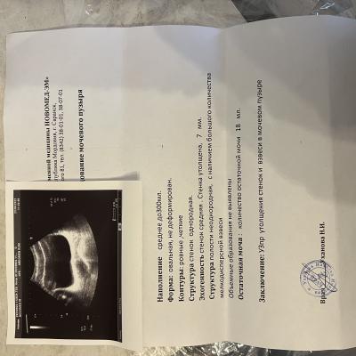 1. УЗИ мочевого пузыря выполнено недостаточно информативно.
