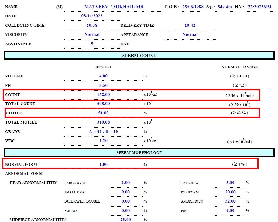 Добрый день! Это означает, что в представленной спермограмме только 1% морфологически нормальных сперматозоидов, а в норме должно быть 4% и более. Одного результата недостаточно для выводов - нужно сдать еще 1 спермограмму через 3 месяца после первой. В это время постарайтесь не курить, заниматься физическими нагрузками, не посещать баню/сауну и тд. Можно принимать антиоксиданты, например, Мираксант. Если второй результат будет таким же - надо обращаться к урологу очно, обследоваться и выяснять причину. После этого обсудить схему лечения. Удачи.