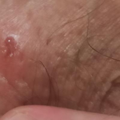 При надавливании жжется как мозоль, есть практически прозрачное, совсем немного кровенистое отделяемое при нажатии на мозоль