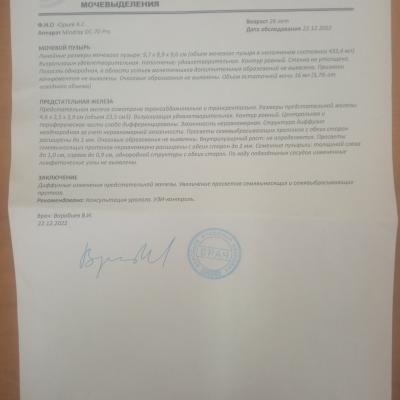 И посоветовал лечь в стационар сегодня 4 день моего лечение результат есть но очень маленький, головка полового органа появились белый налет и маленькие язвочки и были 2 пакли белой жидкости с урерты.