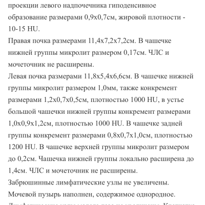 Чтобы более точно ответить необходимо видеть исходные данные компьютерной томографии, одного текстового описание в виде заключения недостаточно. Но даже по этому заключению видно, что имеется рецидивная мочекаменная болезнь. Необходимо принимать решение о дальнейшей тактике ведения. Возможно, будет речь идти о каких-то хирургических пособиях, включая дистанционная литотрипсия, например, или эндоскопические методы. Также необходимо проводить метафилактику мочекаменной болезни, то есть процедуры направленные на профилактику развития осложнений после хирургического лечения.