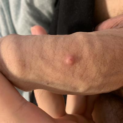 Это образование похоже на фурункул полового члена. Его нельзя выдавливать. Соблюдайте половой покой. Обработайте образование спиртом 2 раза в день. Если не пройдет в течение 2-3 дней, то покажитесь урологу на очном приеме.