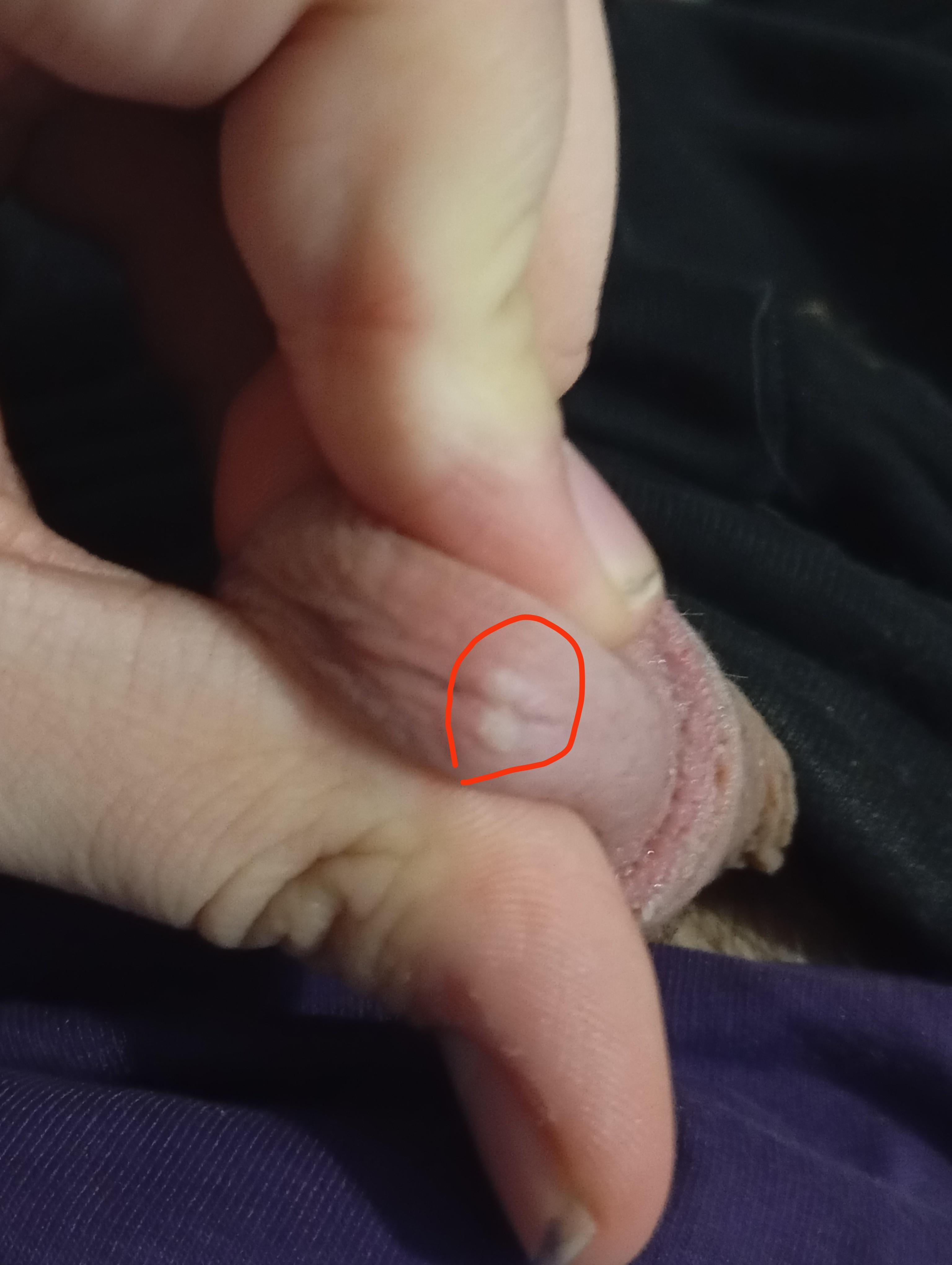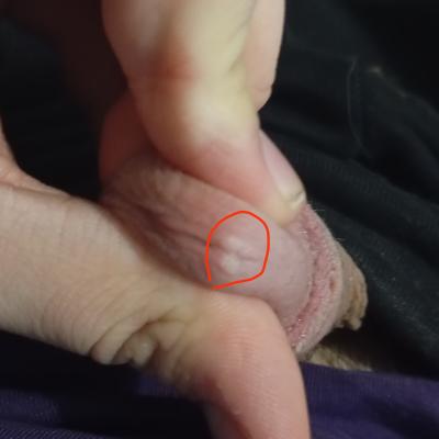 Пациент жалуется на наличие белого уплотнения на головке полового члена, которое присутствует около двух месяцев.
