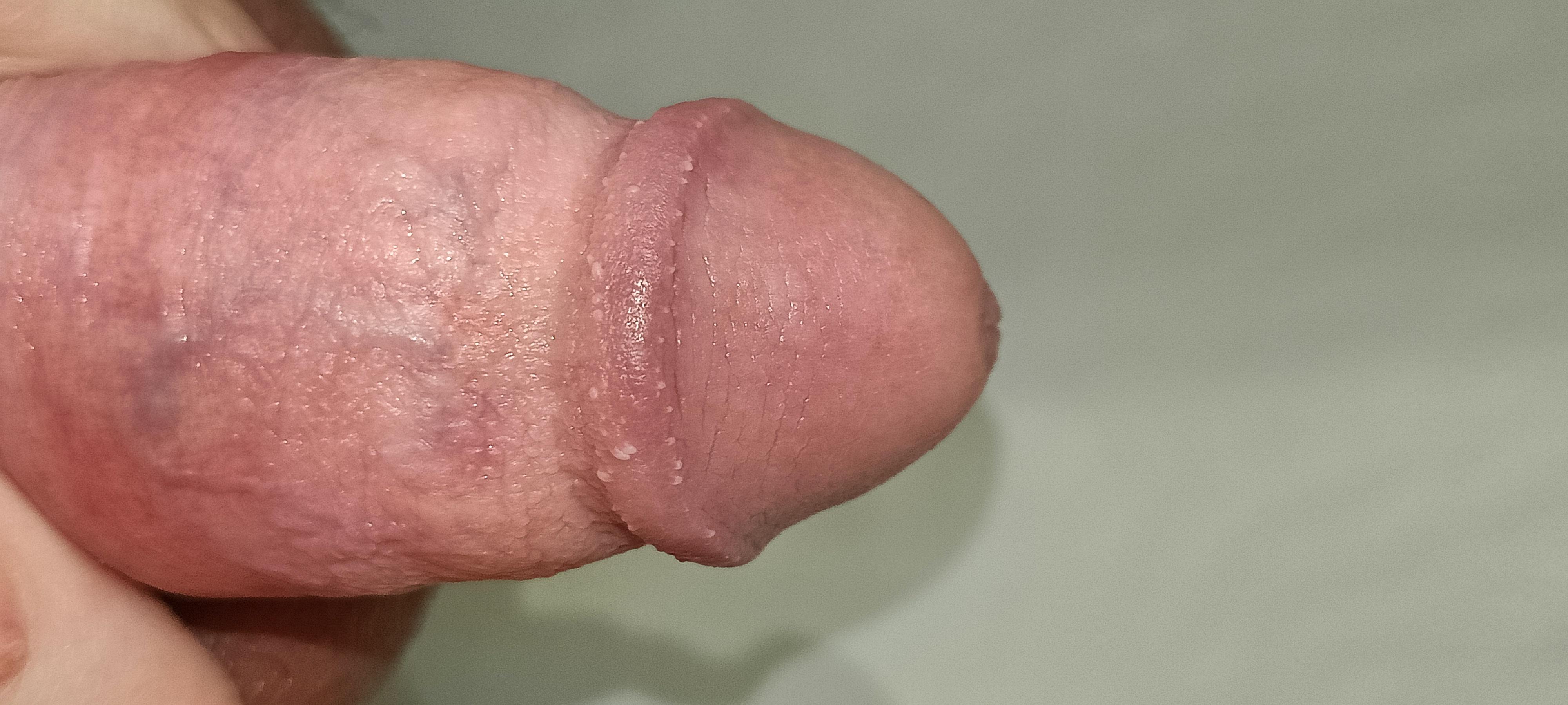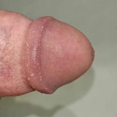 Согласно предоставленной информации, пациент заметил изменения на головке полового члена, которые его беспокоят. Фотографии, предоставленные пациентом, позволяют предположить наличие жемчужных папул полового члена (Pearly Penile Papules, PPP).