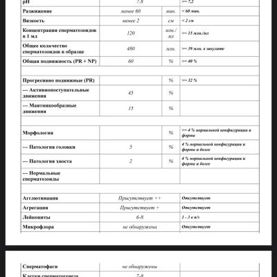 Результаты спермограммы пациента:
