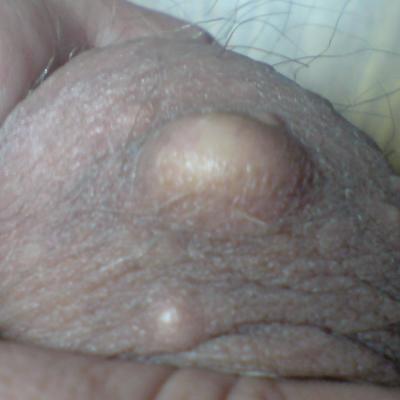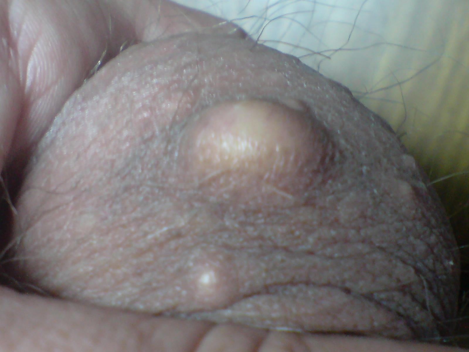 Здравствуйте!Помогите пожалуйста,вернее подскажите как решить эту проблему!Около года назад на коже левого яичка появился маленький белый шарик со временем он стал увеличеваться и уже стал размером с гарошину!Болевых ощущений нет,на ощупь твердый,а пару месяцев назад вокруг него появились множественный черные точки!А на сегодняшний день стали еще появляться такие шарики но пока они маленькие!Подскажите пожалуйста,что это и как это лечить?А может уже и пора обратиться в поликлинику?Заранее спасибо!С уважением Олег!Фото моей проблемы прилогаеться!