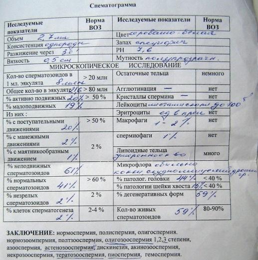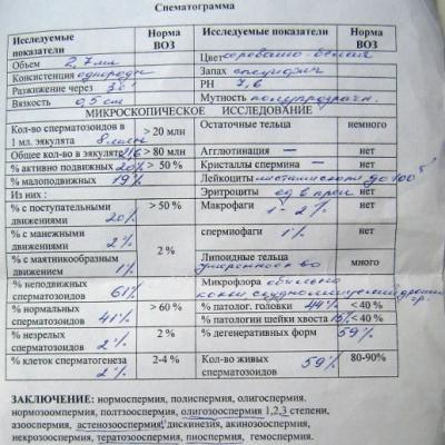 Как мне и посоветовали, я сделал повторный анализ в другом месте, где обнаружились: Олигоспермия 3 ст, астенозооспермия, тератозооспермия и пиоспермия.