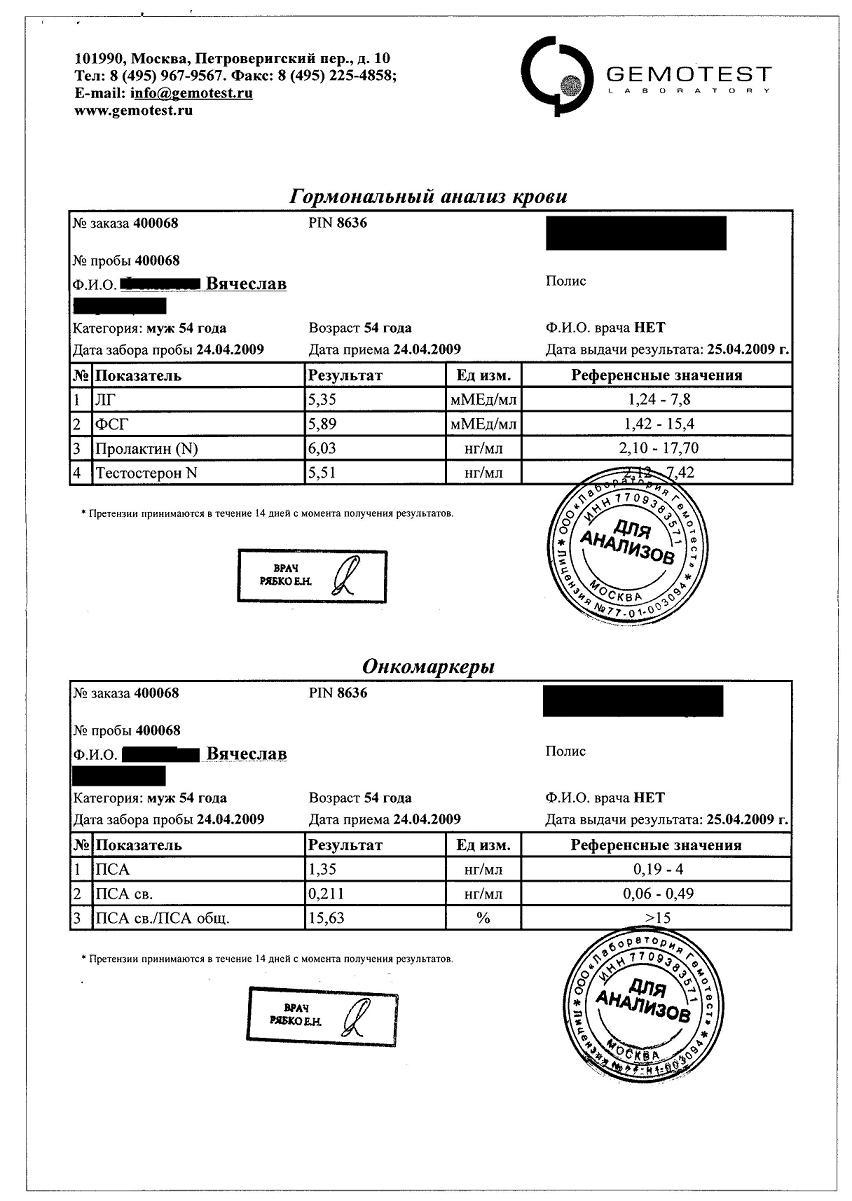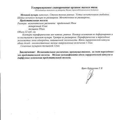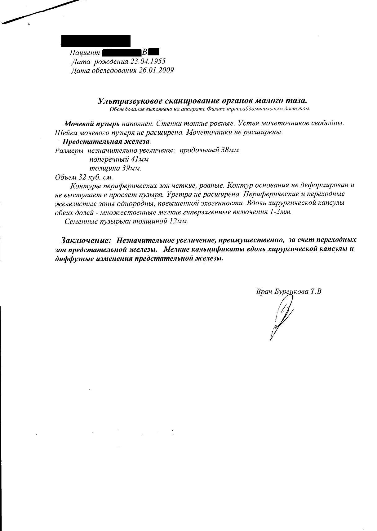 В клинике сделали УЗИ предстательной железы и анализы крови и мочи. Никакого другого обследования не делали. Других жалоб у меня нет.
