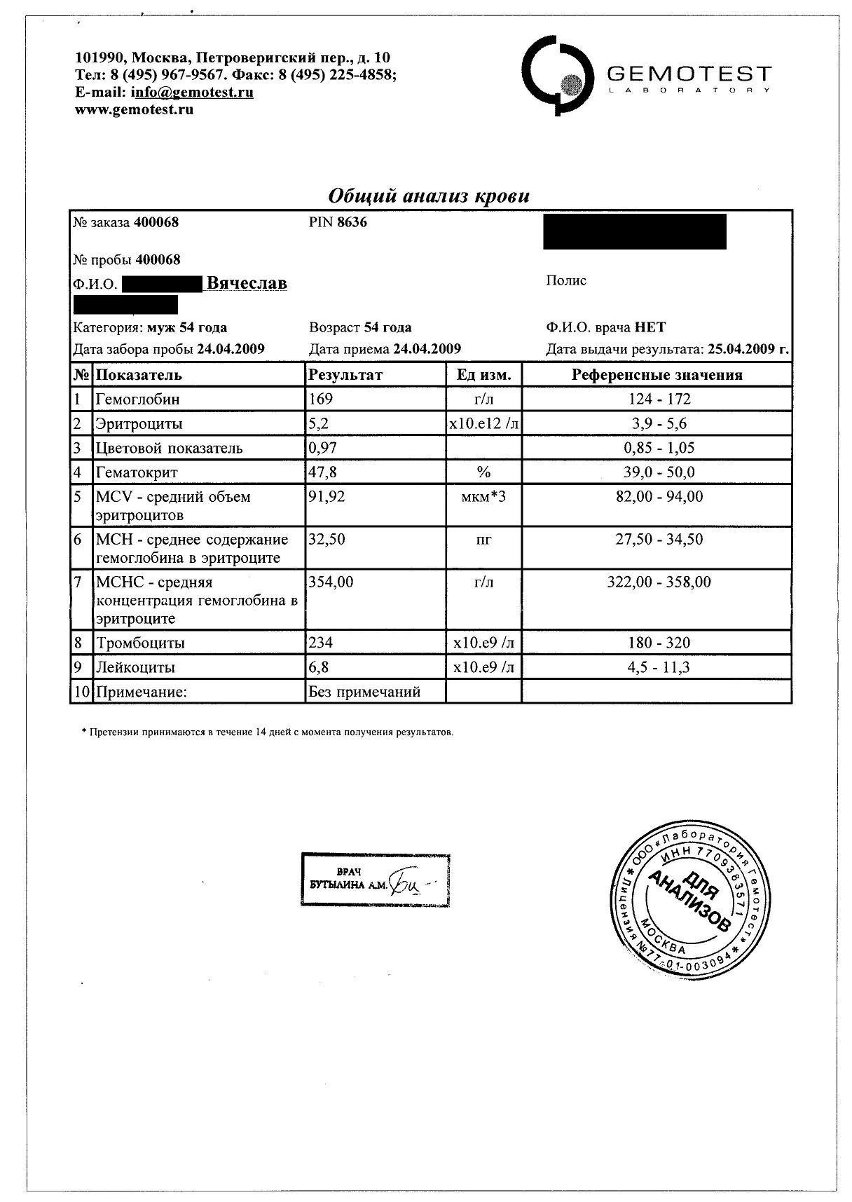 Изучив все свои анализы, я не нашел отклонений от нормы ни в одном пункте.