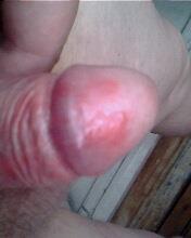 Недавно где то неделю назад на головке и крайней плоте появились красные пятна
